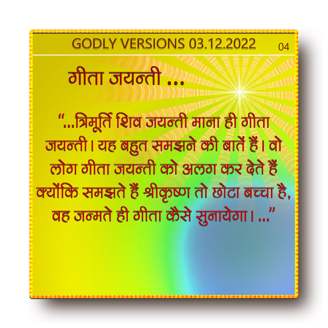 - त्रिमूर्ति शिव जयन्ती माना ही गीता जयन्ती।