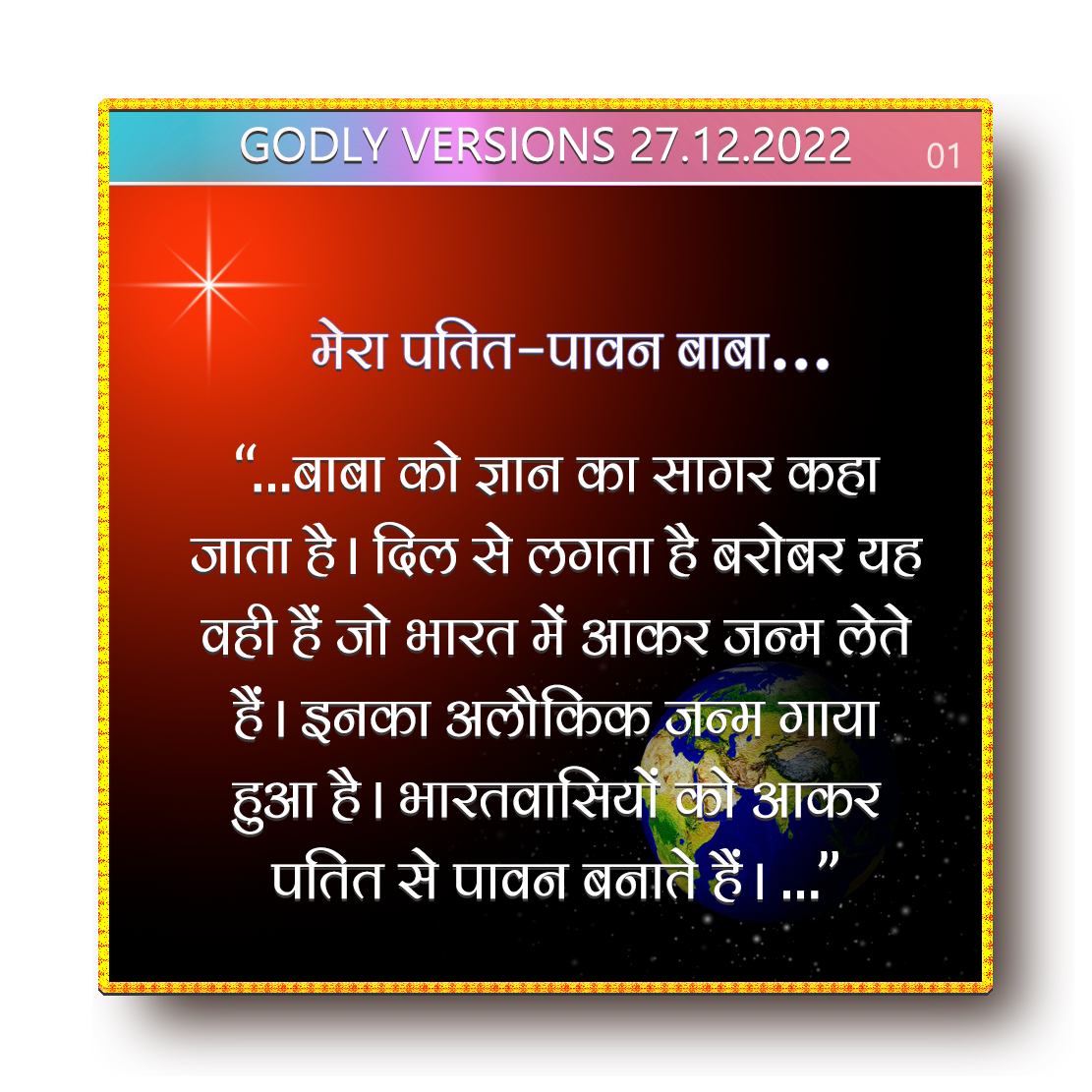 27-12-2022 प्रात:मुरली ओम् शान्ति "बापदादा" मधुबन